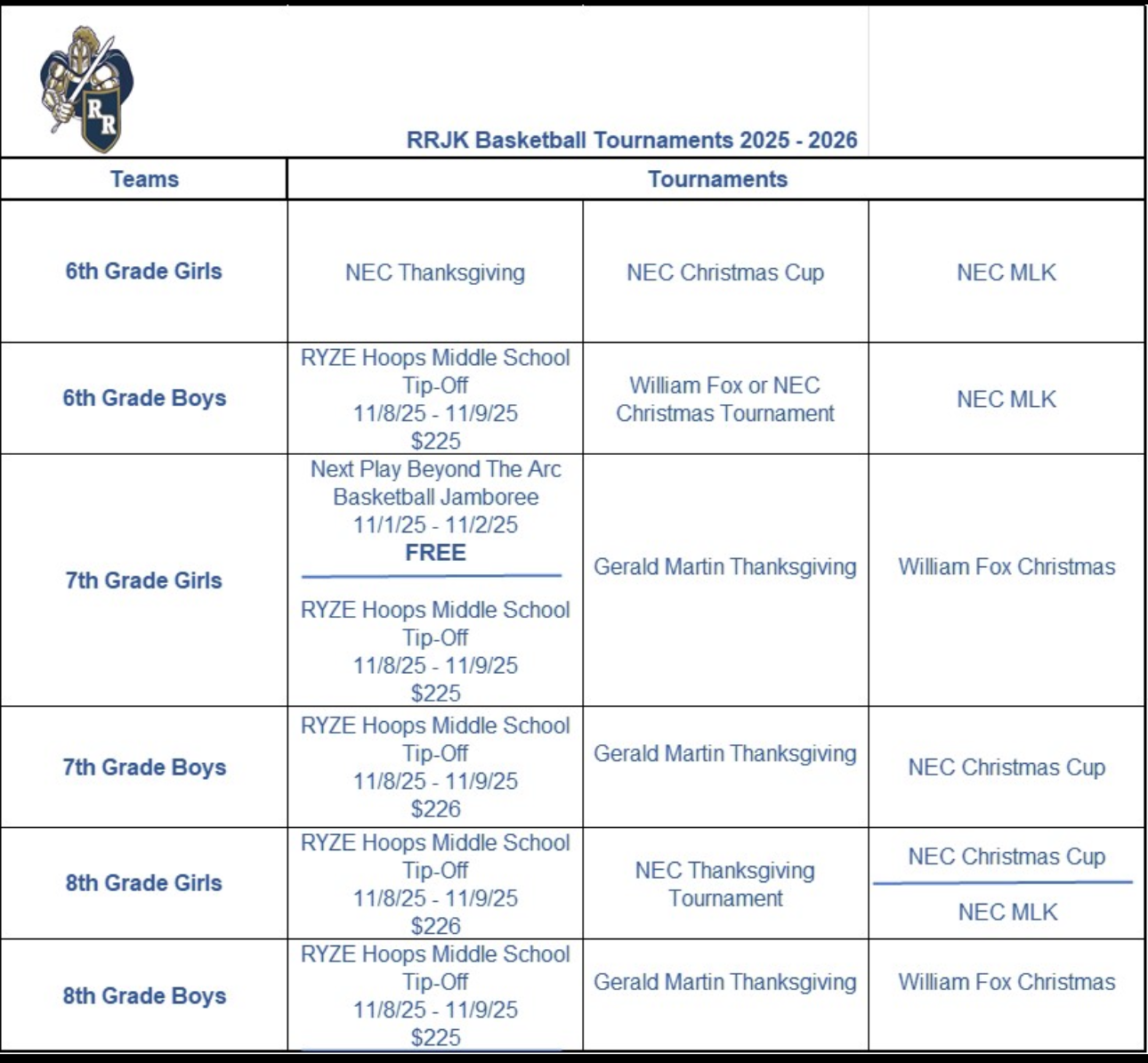 The mission of the River Ridge Jr. Knights Basketball Club is to support the varsity program, both in spirit and financially, creating a stronger overall program. The RRJKBC aims to develop elementary and middle school basketball players in basketball skills, techniques, endurance and stamina, as well as sportsmanship through organized teams. Lastly, the RRJKBC hopes to develop leadership qualities in our players through discipline, training, and sourcing head coaches that will serve as good role models.