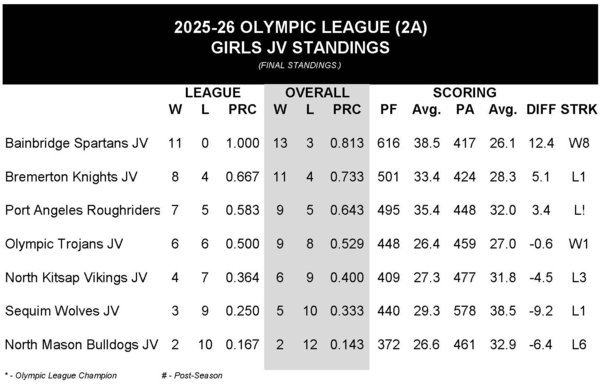 | BHS Girls JV | 11-4 | .733 | 6-2 | 5-2 | 501 | 33.4 | 424 | 28.3 | 8-2 | L1 |