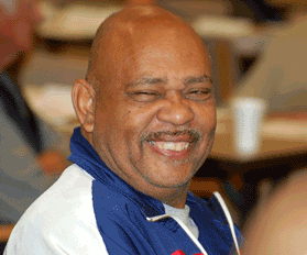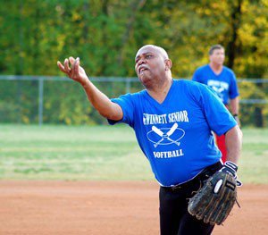 Like the old Timex commercial my nominee takes a licking and keeps on ticking. It used to take a lot of fortitude to pitch to the sluggers in this league prior to safety nets and face masks. This guy took some of the hardest shots I've ever seen and kept coming back for more. Many of you probably have already guessed who my candidate is. I've had the pleasure of playing with him several years in the league and in tournament ball. To say he is competitive is a gross understatement. That competitive nature always comes with a smile and a kind word for teammates. He has given of his time to coach and volunteer at our games and outings. To keep coming back after injury shows his love and dedication to the game of softball. It is my pleasure to nominate as this year's Jim Smith award winner, Mr. Nate Henry.