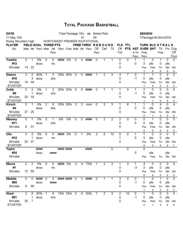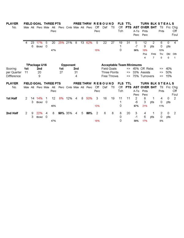 Total Package 16U Player Stats
