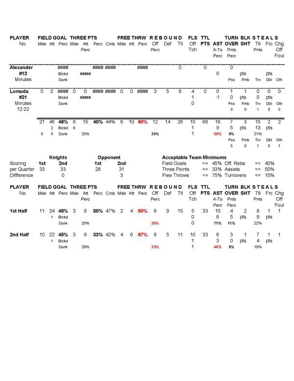 In the end, however, the Knights proved to be too much, even without their coach and his Division I caliber son.