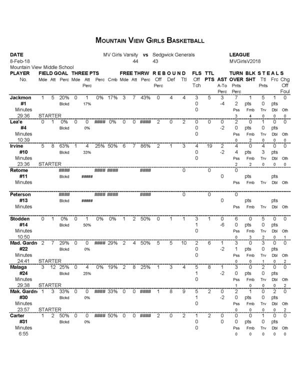 MV Girls Varsity | 6 | 10 | 14 | 14 | 44 |