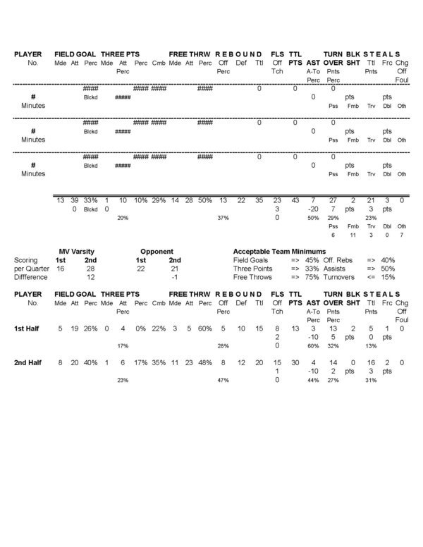 | Team Stats | 14 | 48 | 29.2 | 13 | 39 | 33.3 | 1 | 9 | 11.1 | 14 | 28 | 50.0 | 13 | 22 | 35 | 7 | 27 | .3 | 21 | 2 | 2 | 23 | 43 | ||