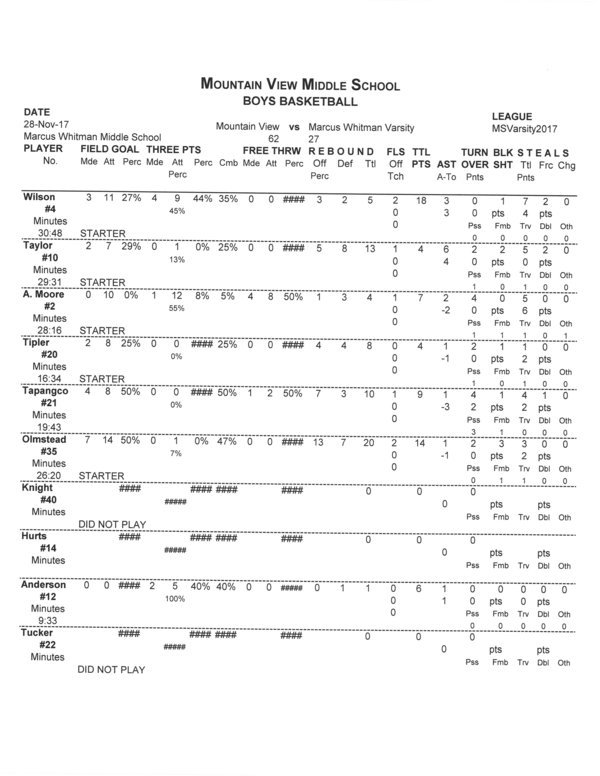 MV Boys Varsity | 18 | 6 | 21 | 17 | 62 |