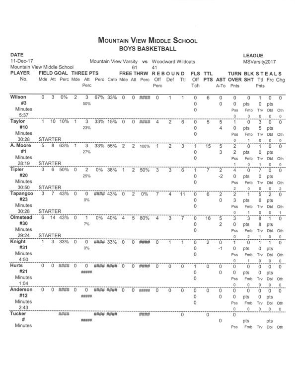 MV Boys Varsity | 19 | 15 | 11 | 16 | 61 |