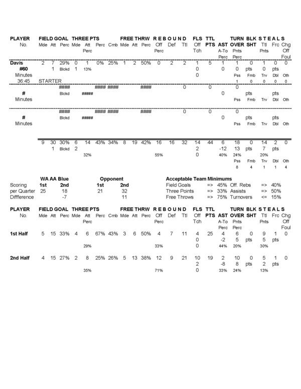 | 60 | Davis, Lamere | 1 | 2 | 8 | 25.0 | 2 | 7 | 28.6 | 1 | .0 | 1 | 2 | 50.0 | 2 | 2 | 1 | 1 | 1.0 | 1 | 1 | 5 | |||