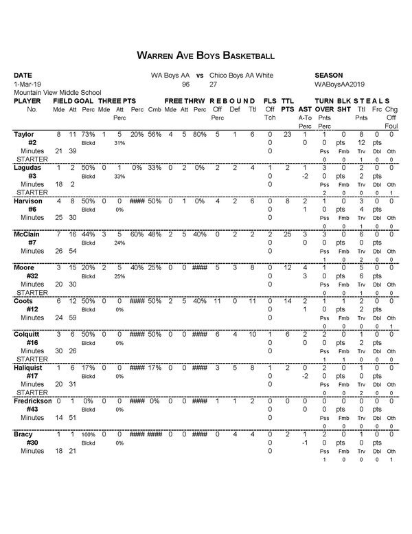 Chico Boys AA White | 10 | 17 | 27 |