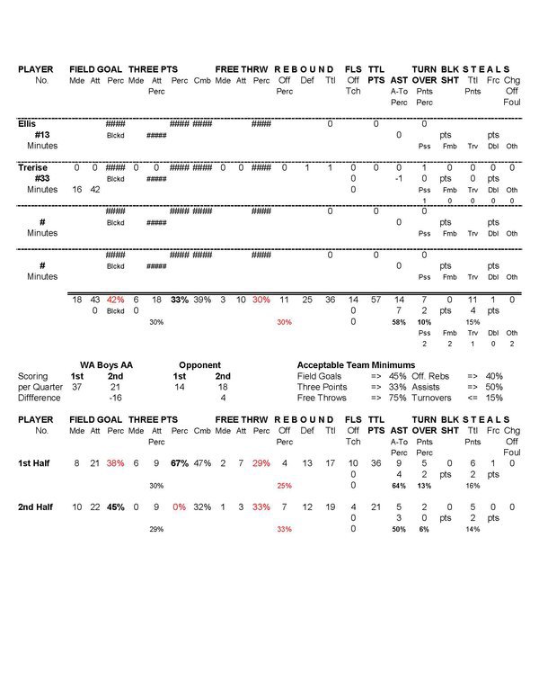 | No | Name | GS | M | A | % | M | A | % | M | A | % | M | A | % | O | D | Tot | AST | TO | A/T | STL | PF | PTS |
