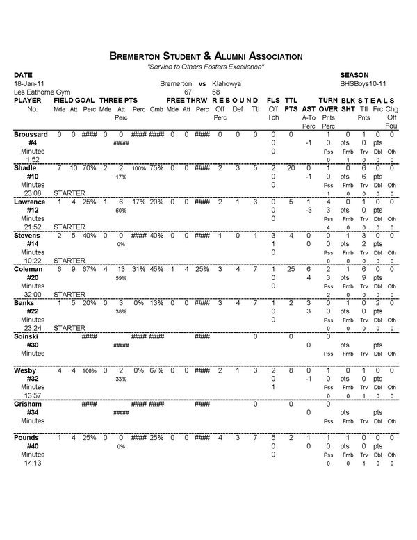 BHS Boys Varsity | 12 | 20 | 19 | 16 | 67 |