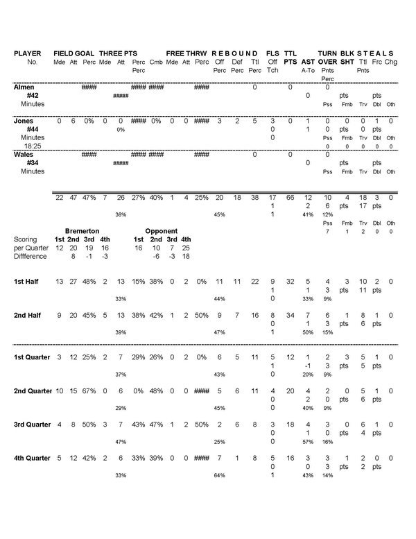 | Team Stats | 29 | 73 | 39.7 | 22 | 47 | 46.8 | 7 | 26 | 26.9 | 1 | 4 | 25.0 | 20 | 18 | 38 | 12 | 10 | 1.2 | 18 | 4 | 3 | 17 | 66 | |||
