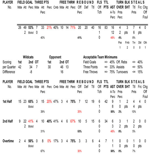 | Team Stats | 35 | 79 | 44.3 | 27 | 47 | 57.4 | 8 | 32 | 25.0 | 10 | 15 | 66.7 | 20 | 19 | 39 | 16 | 4 | 4.0 | 6 | 4 | 4 | 16 | 88 | ||