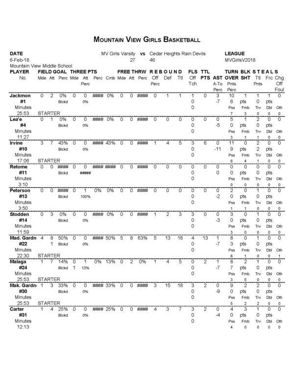 | Team Stats | 10 | 37 | 27.0 | 10 | 35 | 28.6 | 2 | 5 | 10 | 50.0 | 15 | 42 | 57 | 5 | 60 | .1 | 12 | 9 | 1 | 17 | 25 | ||