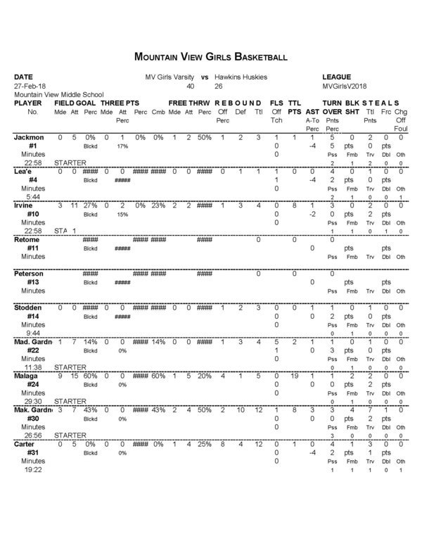 BREMERTON, Wash. – The Mountain View Girls basketball teams came off a bye week Tuesday (Feb. 28) and the additional week of practice paid dividends. Without too much trouble, the varsity team picked up their 4th win of the season, 40-to-26, against the visiting Hawkins Huskies.