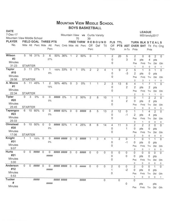 MV Boys Varsity | 22 | 17 | 16 | 15 | 70 |