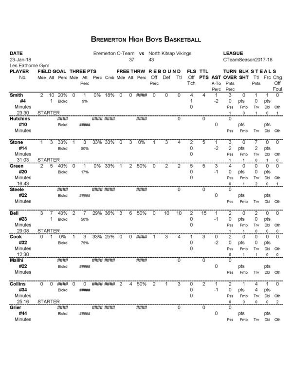 BHS Boys CTeam | 13 | 14 | 2 | 8 | 37 |