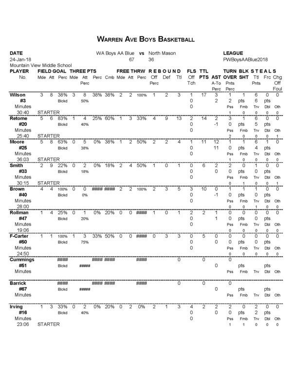 WA Boys AA Blue | 34 | 33 | 67 |