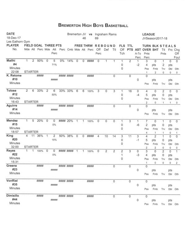 BHS Boys JV | 8 | 17 | 13 | 8 | 46 |