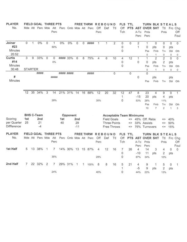 | Team Stats | 15 | 49 | 30.6 | 12 | 35 | 34.3 | 3 | 14 | 21.4 | 14 | 16 | 87.5 | 12 | 20 | 32 | 8 | 23 | .3 | 9 | 4 | 1 | 12 | 47 | ||