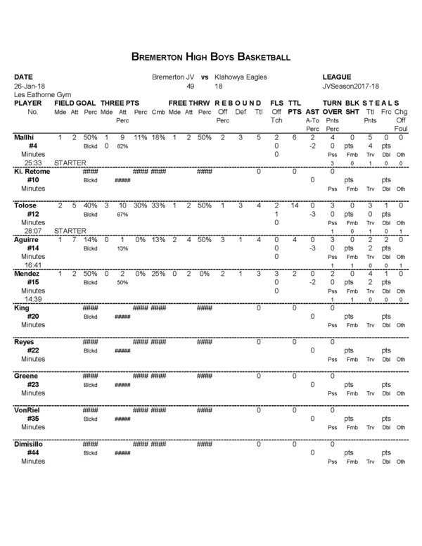 | 4 | Mallhi, Jomiah | 1 | 2 | 11 | 18.2 | 1 | 2 | 50.0 | 1 | 9 | 11.1 | 1 | 2 | 50.0 | 2 | 3 | 5 | 2 | 4 | .5 | 5 | 2 | 6 | ||