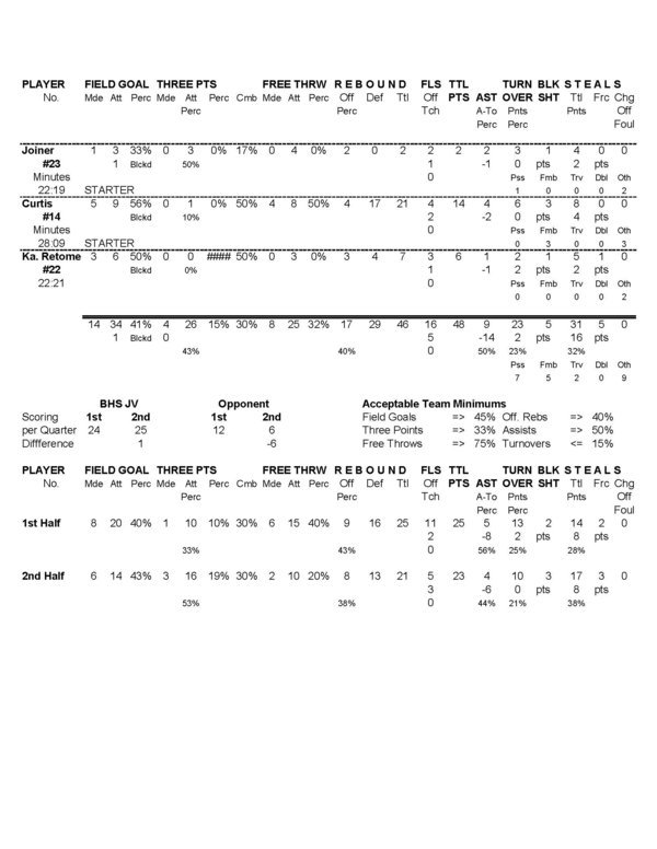 | Team Stats | 18 | 60 | 30.0 | 14 | 34 | 41.2 | 4 | 26 | 15.4 | 8 | 25 | 32.0 | 17 | 28 | 45 | 9 | 23 | .4 | 31 | 9 | 5 | 16 | 48 | ||