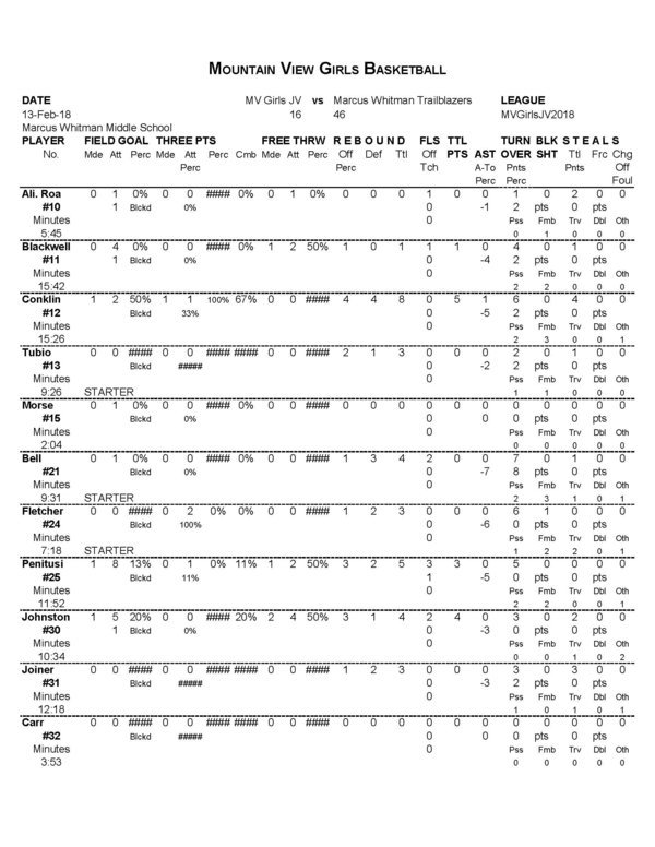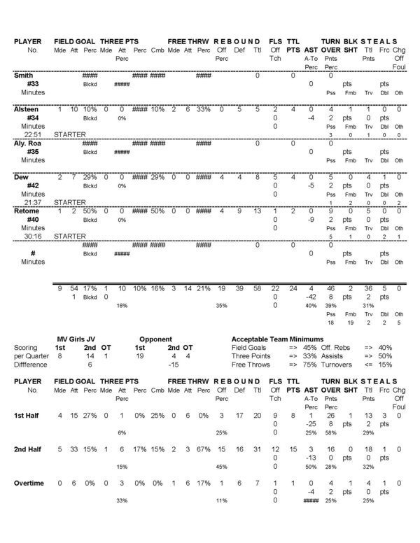 MV Girls JV | 0 | 8 | 13 | 2 | 1 | 24 |