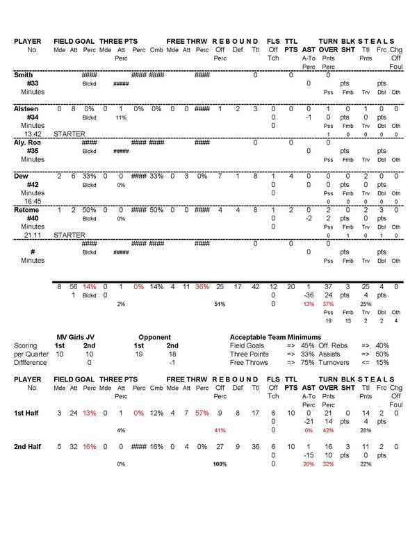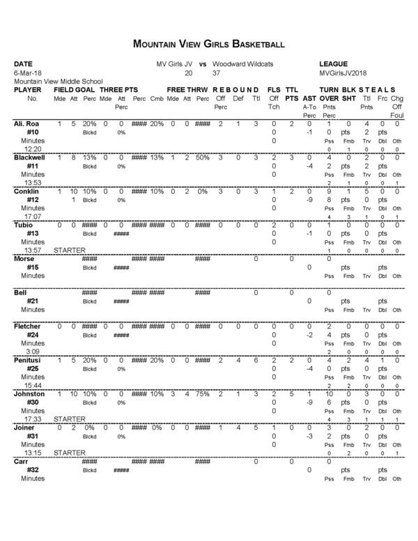 MV Girls JV | 2 | 8 | 6 | 4 | 20 |