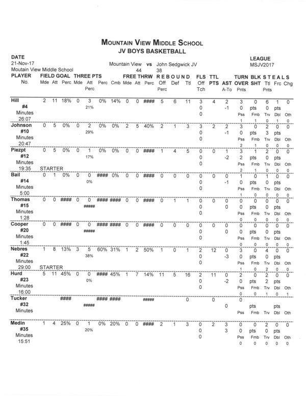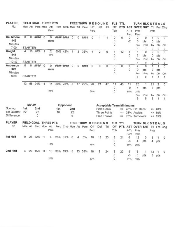 MV Boys JV | 9 | 13 | 11 | 11 | 44 |