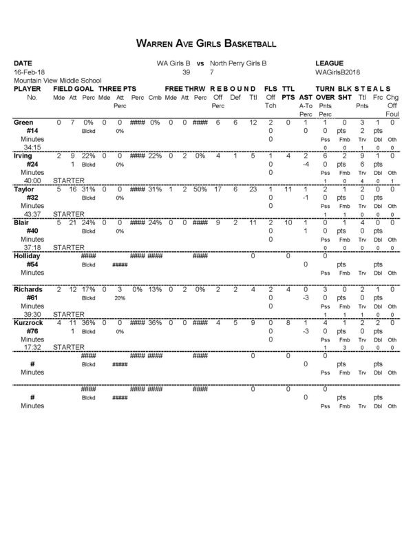 In this game, the Warren Ave B Girls shot 23% (18/79). If you take twice as many shots as your opponent, you are going to win basketball games.