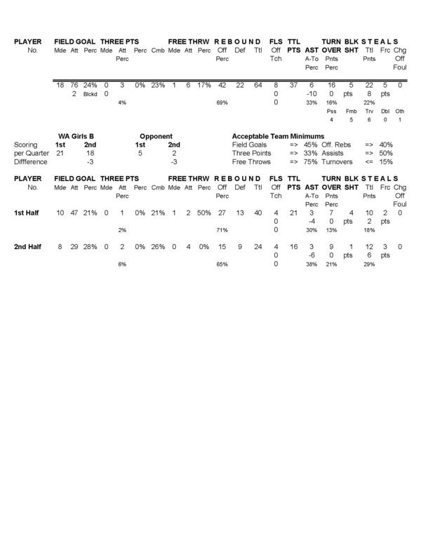 WA Girls B | 21 | 18 | 39 |