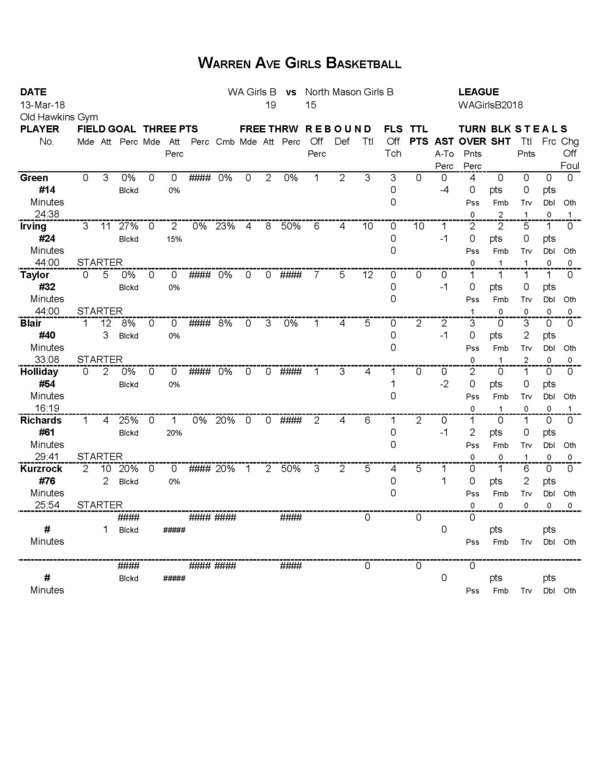 North Mason, the other hand, only took the ball away from Warren Ave seven times and got a measly two points for their effort.