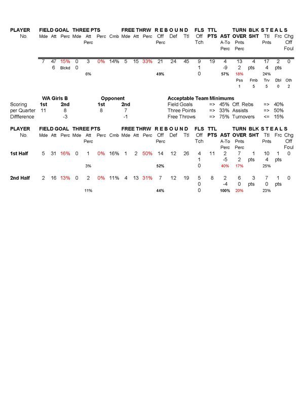 WA Girls B | 11 | 8 | 19 |