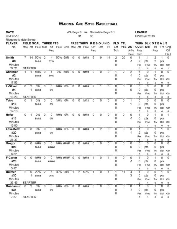 Friday (Feb. 23), Warren Ave lost the first meeting between these two teams this season, 43-to-37, at Mountain View Middle School.