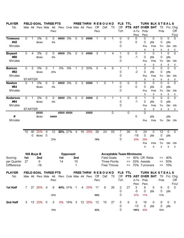 | Team Stats | 14 | 52 | 26.9 | 10 | 40 | 25.0 | 4 | 12 | 33.3 | 4 | 16 | 25.0 | 29 | 24 | 53 | 6 | 24 | .3 | 12 | 6 | 36 | ||