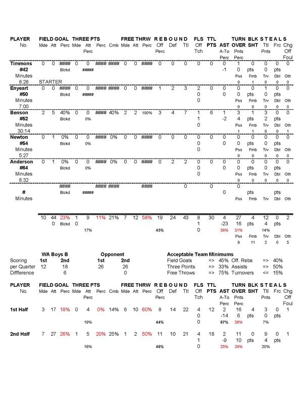 | Team Stats | 11 | 53 | 20.8 | 10 | 44 | 22.7 | 1 | 9 | 11.1 | 7 | 12 | 58.3 | 19 | 24 | 43 | 4 | 25 | .2 | 12 | 4 | 2 | 8 | 30 | ||