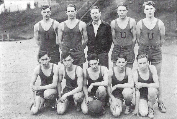 UNION HIGH BOYS BASKETBALL (1925-26) Front Row (l to r): Calvin Hooper, ?, ?, Arthur Waaga, ? |