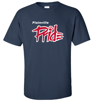 Navy Gildan cotton t-shirt with Plainville Pride logo.