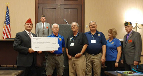 Paul Iverson presents National Commander Denise Rohan and Americanism Chairman Richard Anderson with a $5,000 check on behalf of Connecticut for Operation Comfort Warrior. Connecticut has donated $16,000 over the last three years