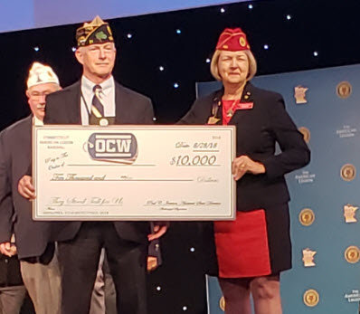 At the September national baseball meeting, Paul Iverson - Assistant State Director CT American Legion Baseball - presented to American Legion National Commander Charles Schmidt a check for $6000 in support of Operation Comfort Warriors. This is the second year the CT American Legion Baseball organization has raised funds to contribute to this critical American Legion Program for Veterans.